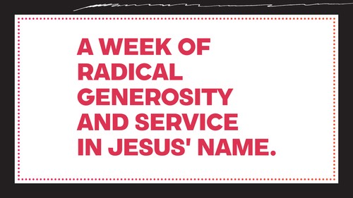 Imagine what would happen if our church joined together for a week of radical generosity and service in Jesus' name to our neighbours and community.
